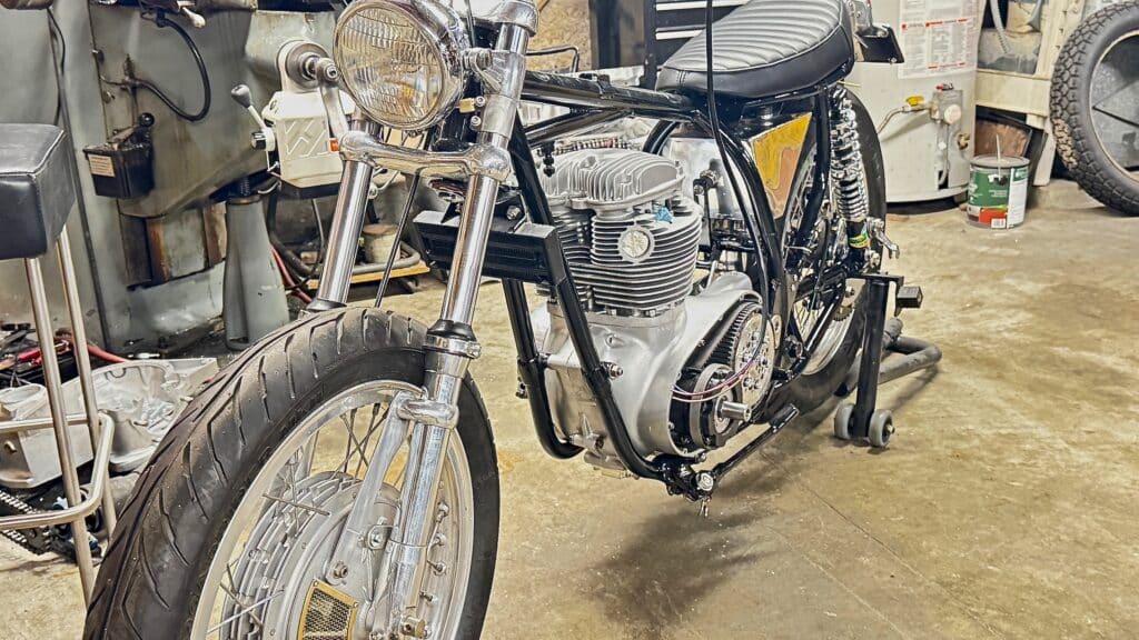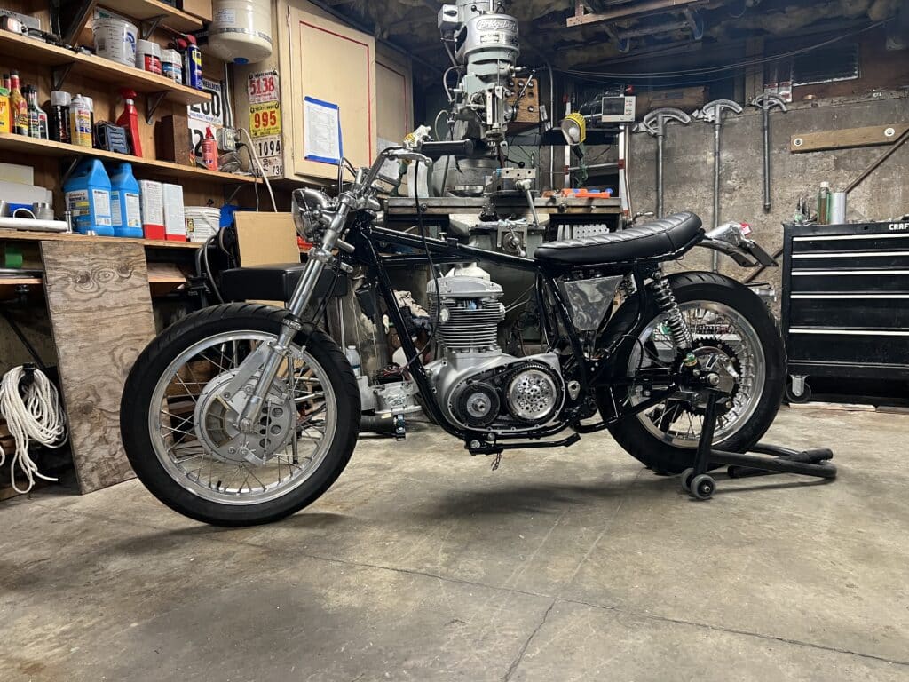 The motor is now back into the frame. There is still much to do such as building an exhaust system, carburetor manifolds, wiring, hoses. oil, fuel, and vent lines etc.
