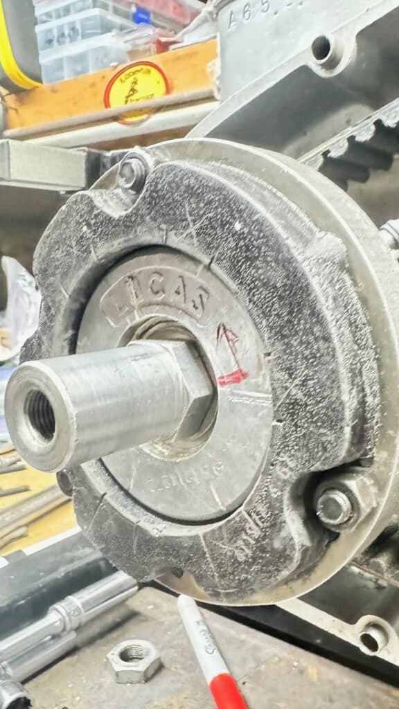 The Bob Newby clutch saga didn’t end when I re-cut the clutch hub taper to match the BSA transmission main shaft taper. Yes, this solved the taper fit issues and I was able to move the clutch basket in about ¼” which aligned the drive belt much better as well as taking more strain off the main-shaft, but now we found other issues. The first issue was that now the rod that actuates the clutch pressure plate was now ¼” too long. This was easily fixed by just cutting off ¼” from the rod, heating the tip red and quenching it to re-harden the tip. The next issue involved the belt drive-hub width. It’s thicker than the combined width of the old triple-chain, drive sprocket, and rotor drive plate, also by about ¼”, so the studs that hold the alternator stator were too short by about ¼”. Additionally, we couldn’t even use the rotor drive plate because it was driven by the spline on the crankshaft and the spline is now completely covered up by the new wider drive belt hub.